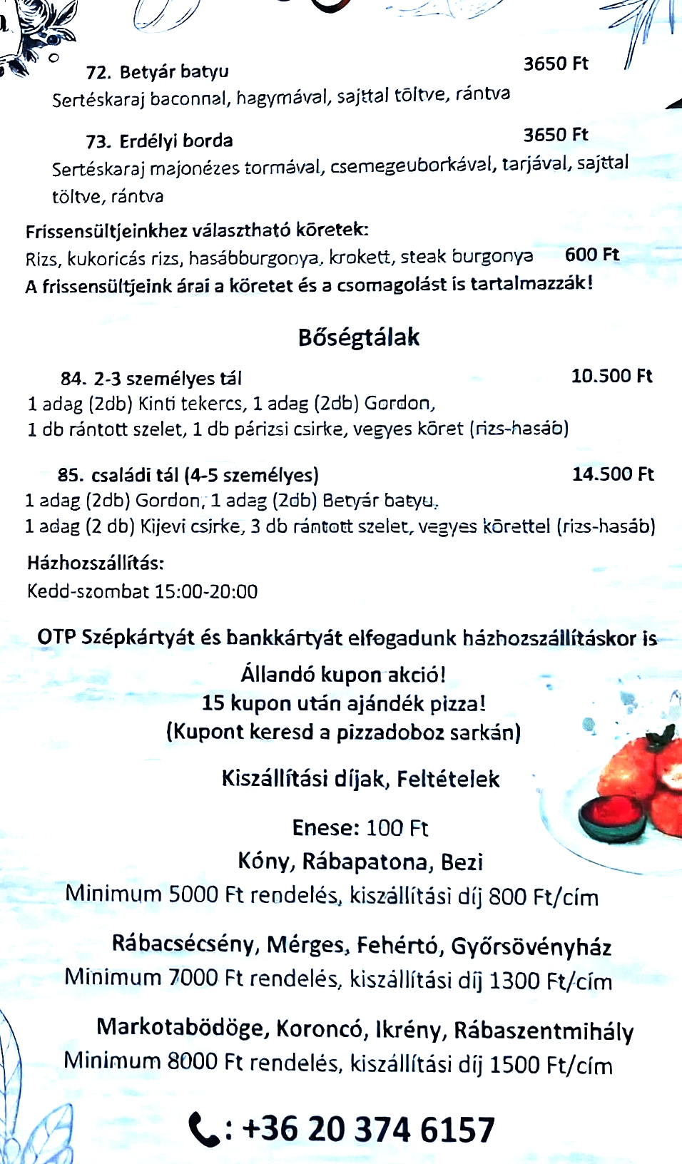 A családias hangulatú étteremben frissen sülnek, így mindenki megtalálhatja a kedvencét